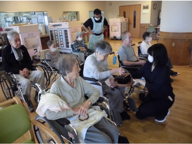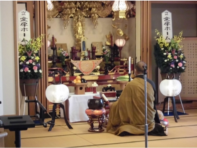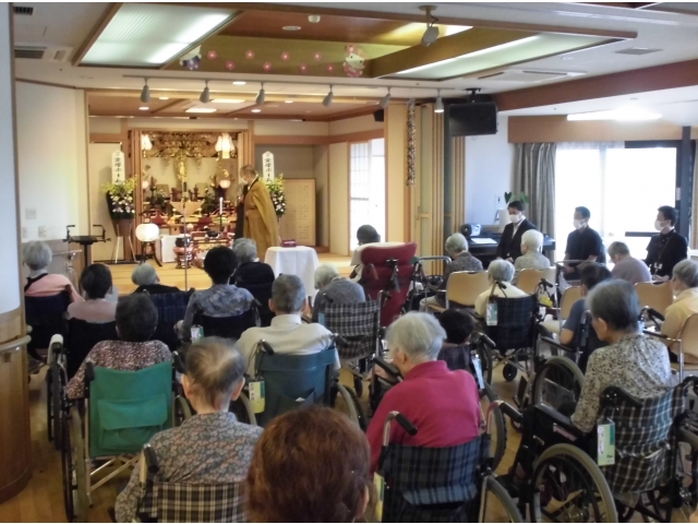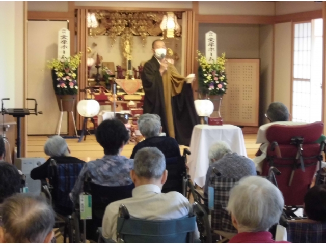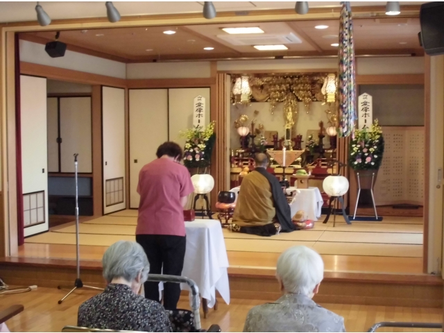 8月1日、盆供養を行いました。龍洞院の住職にお経を唱えて頂き、職員と利用者の皆さんでお焼香をしました。 説法では、「笑って過ごせると幸せですが、ありがとうという言葉やニコニコすることでやさしい気持ちになれます。」という温かいお話を頂き、皆さん聞き入っていました。 盆供養終了後、職員代表がお墓参りをさせて頂きました。