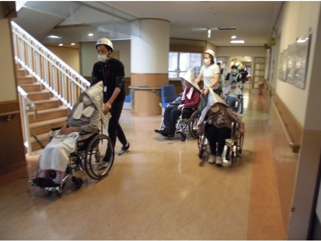 8月30日(水)に総合防災訓練を実施しました。今回は、1丁目と3丁目の利用者様が対象です。 避難訓練の後には玄関前にて消火器訓練を行いました。いざという時、消火器を焦らず使えるようにしたいですね。