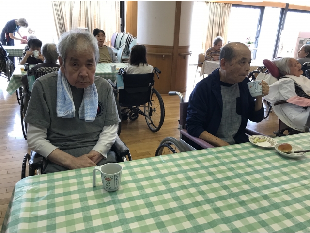10月11日、ボランティアあかり様ご協力のもと、食堂にて喫茶を行いました。 今回は2フロア合わせて54名の方に参加していただきました☕