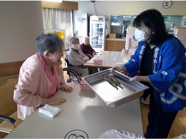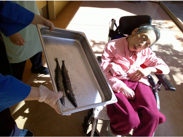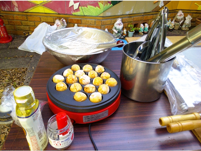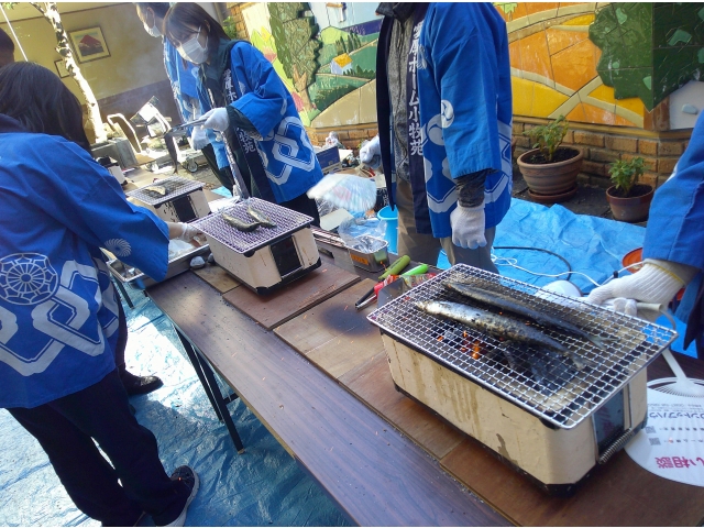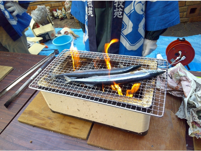 その後、中庭でさんまとたこ焼きを焼きました🐟✨