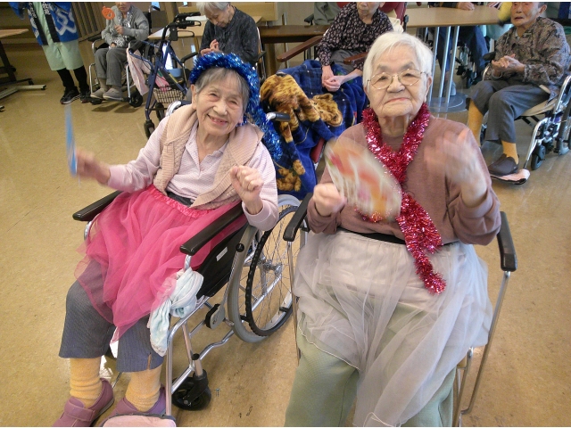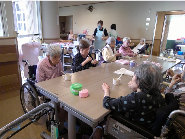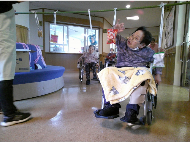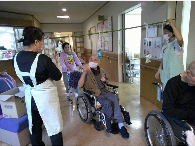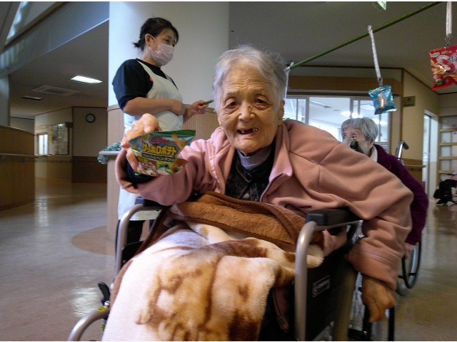 午後からはフロアごとに風船飛ばしやおやつ等を楽しみました。 1丁目 菓子食い競争💨