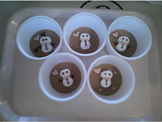 クリスマスデザートはチョコムースの上にマシュマロを使った雪だるまを乗せクリスマスを先取りした可愛いおやつです。