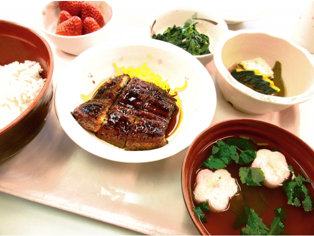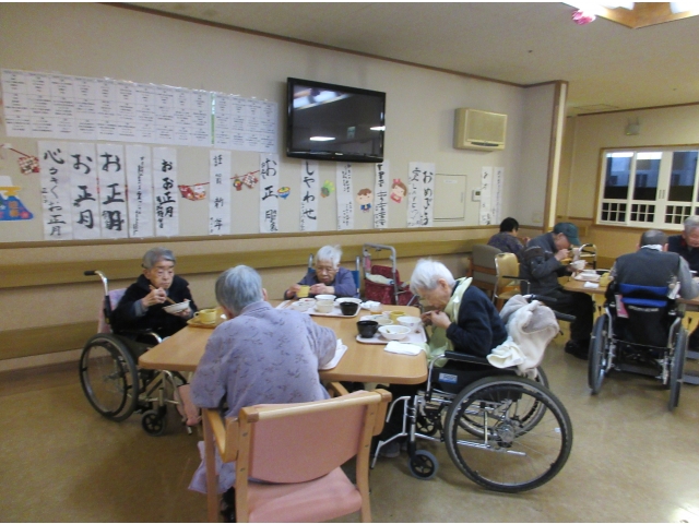 1月12日 誕生会を行いました。誕生月の方へ苑長よりあいさつを行い、乾杯を行いました。 【本日のメニュー】うなぎの蒲焼き、炊き合わせ、ほうれん草とツナの和え物、いちご 「うなぎ!すごく嬉しい」「いちごが甘い🍓」「ごちそうですね」など大変喜んで頂きました✨