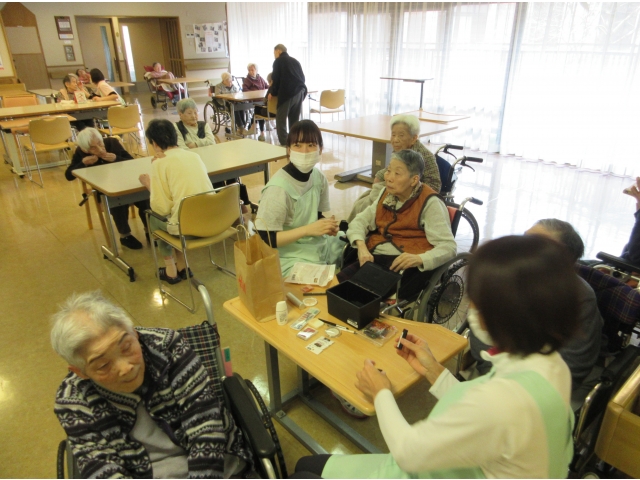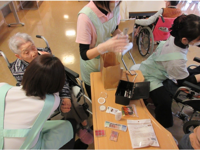 自分でお化粧をしたり職員にしてもらったり皆さん楽しそうです✨