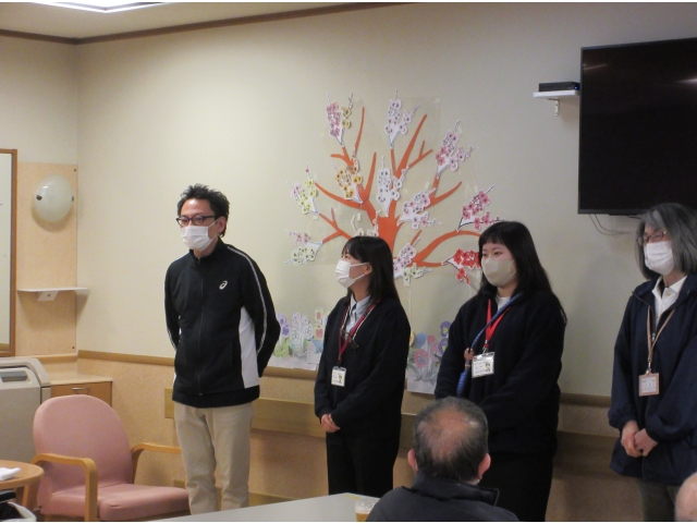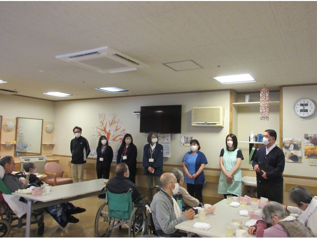 新年度が始まり少し日にちが経ってしまいましたが、新しい職員のあいさつ会を行いました。今年度は、新規職員4名、転入職員4名が新たに小牧苑の仲間となり、利用者の皆さんにあいさつをしました。