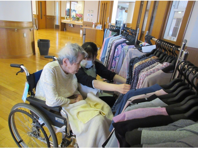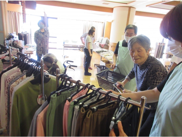 6月5日 夏物衣料販売を行いました。 肌着から洋服、靴まで様々な衣料がずらりと並びました。 「これも素敵ね👚」「すごく似合う✨」「色違いでもう一枚欲しいです👖」 など皆さん目をキラキラさせて、楽しそうに選ばれていました(*^-^*)