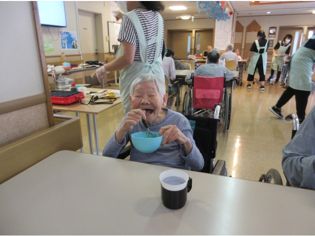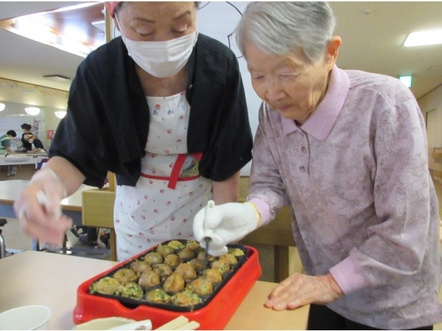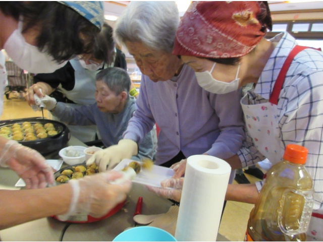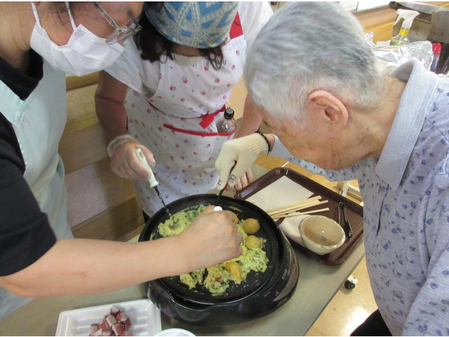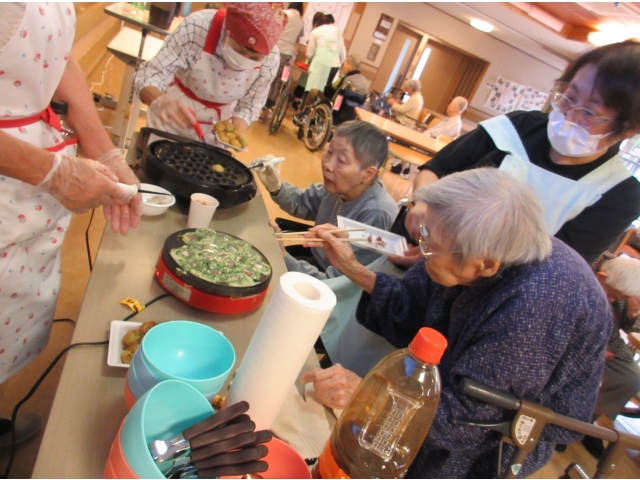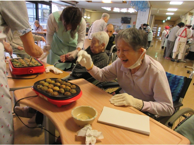 3丁目のデイルームの外まで たこ焼きのいい香りと皆さんの笑い声