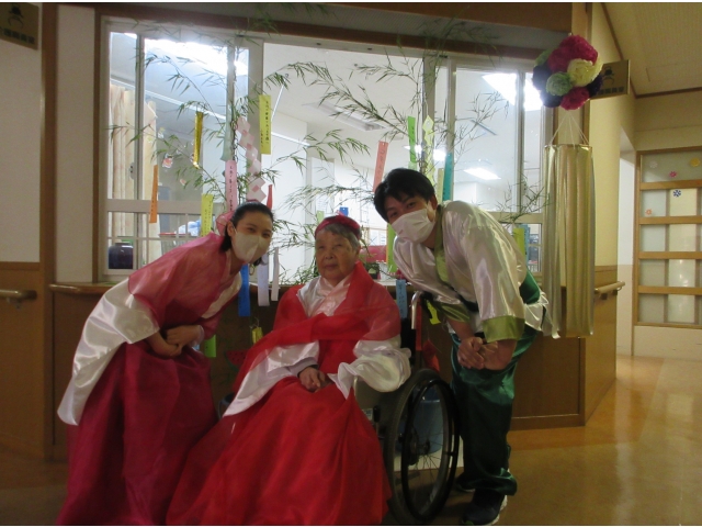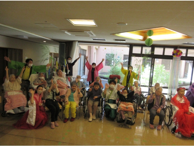 7月3日 七夕会を行いました。 午前中は、織姫&彦星が七夕の音楽にのって登場 🎋一緒に撮影会を行いました📷✨ 皆さんニコニコ笑顔でした(*'▽')