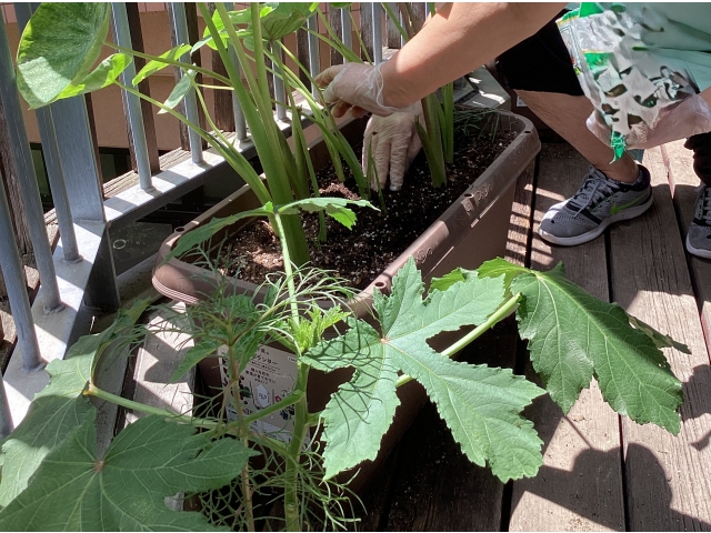 体が冷たくなったので、みんなで育てている野菜のお世話をすることに。
