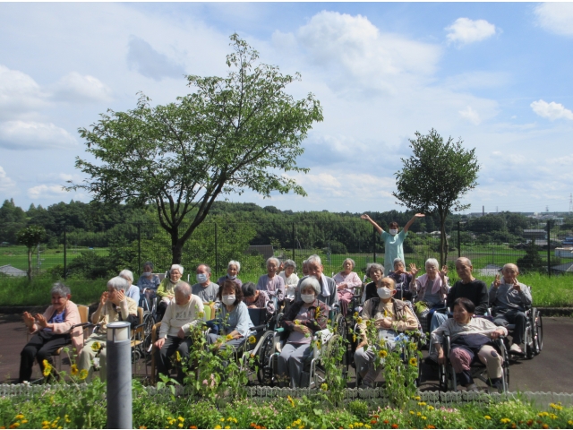お饅頭を楽しんだ後、中庭に出て花壇の花や景色を楽しみ夏の空気を感じました🌺