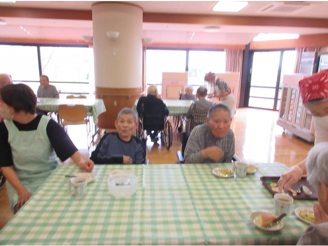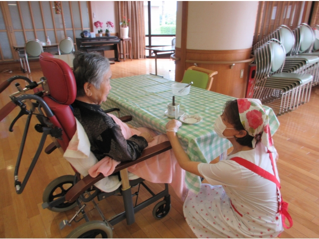 8月28日、ボランティアあかり様の協力のもと喫茶あかりを開店しました。 本日の喫茶メニューは、白桃ようかん(果肉入り)、スフレチーズケーキ、西尾抹茶プリン、コーヒー、紅茶、ココア(温・冷)から、それぞれお好きなものを選んでいただきました。 季節に合ったお菓子とともに、みなさん楽しい時間を過ごされていました。