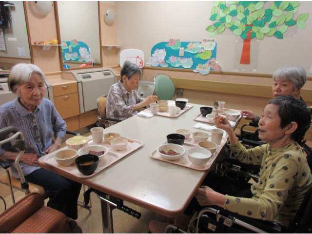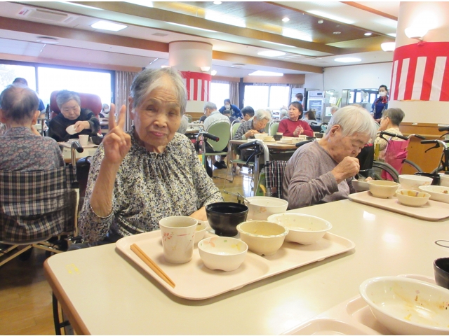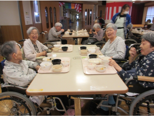 利用者の皆さんも、和太鼓とフラダンスに引き続き、昼食にはうなぎのかば焼きを味わい、楽しんでおられました。