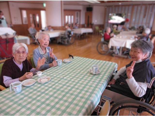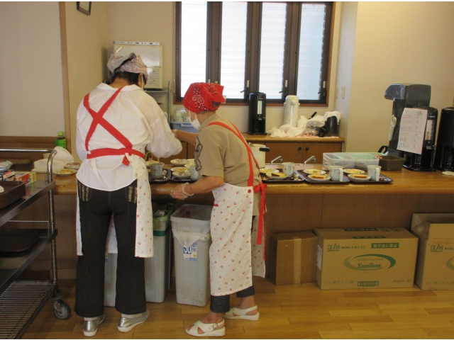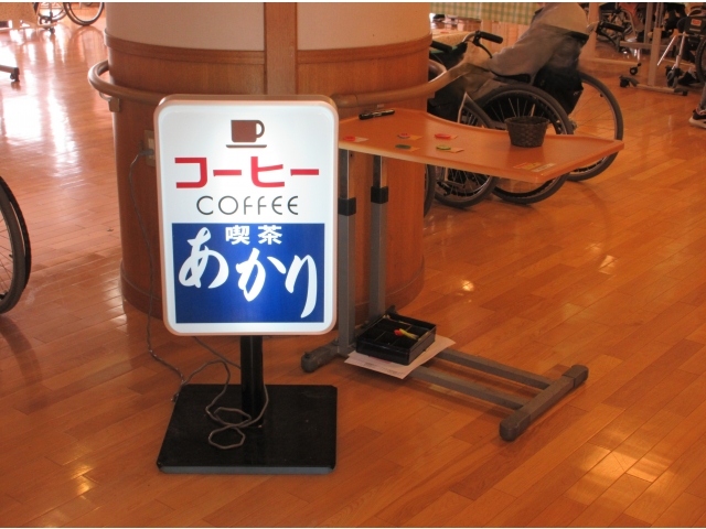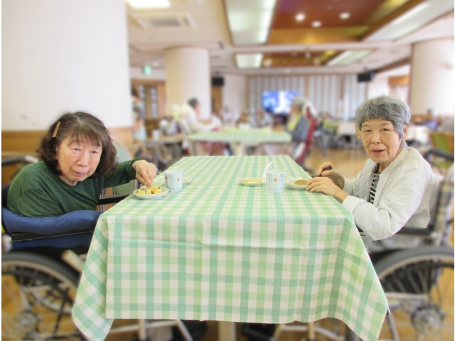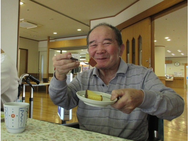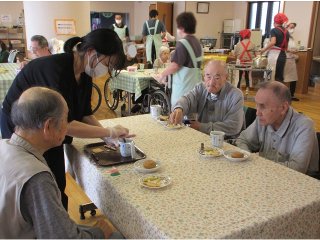 10月2日、ボランティアあかり様の協力のもと、喫茶あかりを開店しました。 本日の喫茶メニューは、なごやん、カステラ、栗ムース、コーヒー、紅茶、抹茶オレ(温・冷)でした。この中から、それぞれお好きなものを選んでいただきました。 「栗ムースには抹茶オレが合うわね♪」「おいしいですね😊」食べ合わせも考えながら、皆さん喫茶の時間を楽しんでおられました。