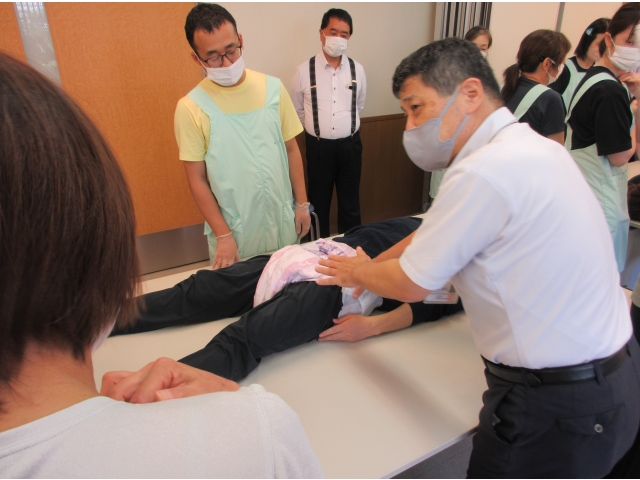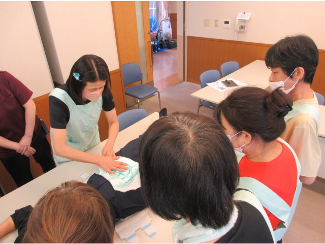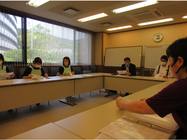 いつもどおり、ご利用者様の排泄状況の確認や、各フロアの取組状況を確認した後、研修修了者からの紙オムツに関する熱血指導が始まりました。