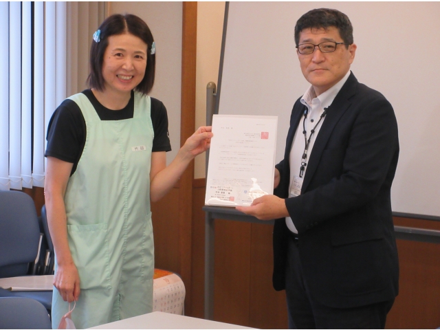 去る10月9日、当苑竹田主任のオムツフィッター研修3級合格証を手に、当法人代表の内田理事長が小牧苑排泄向上委員会に参加されました。ちなみに、内田理事長ご自身も同研修の合格者です。