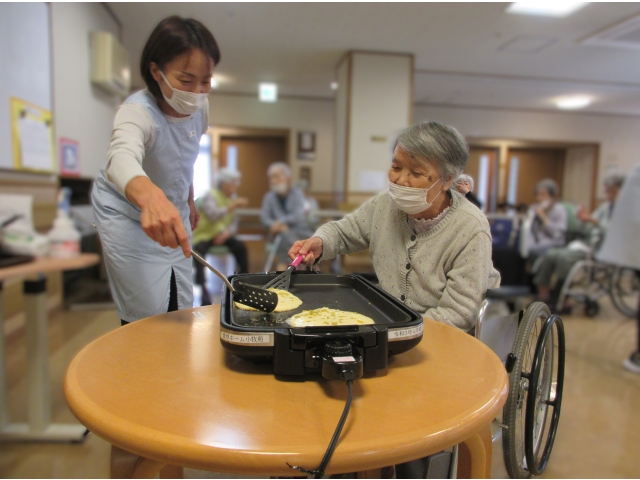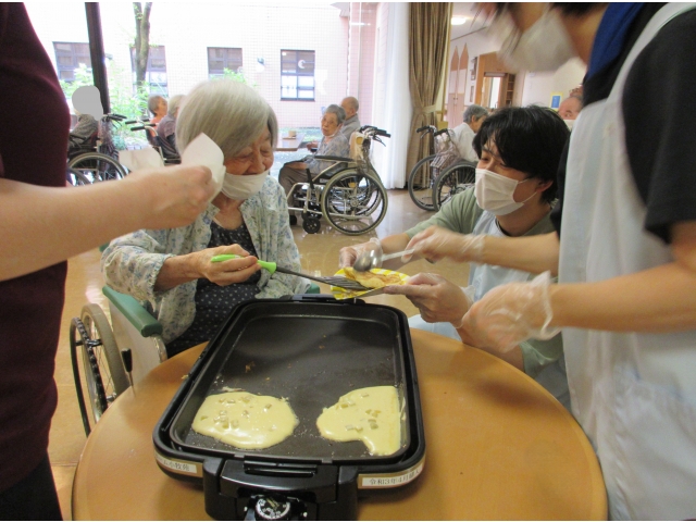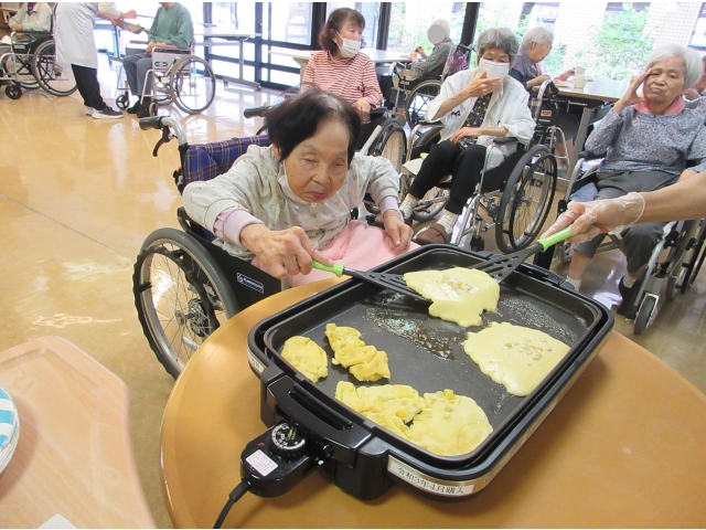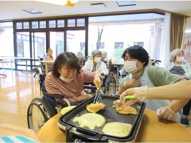 今回のお楽しみ会では、利用者のみなさんと一緒にパンケーキを焼きました♪🥞