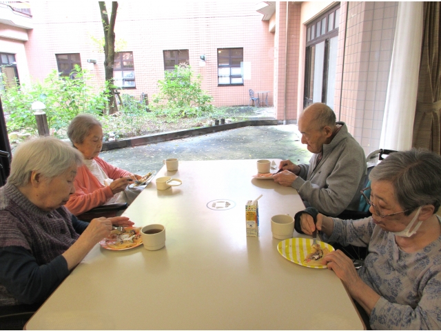 パンケーキにはさつまいもを混ぜて焼き、みなさんのお好みのトッピングをかけて召し上がっていただきました。