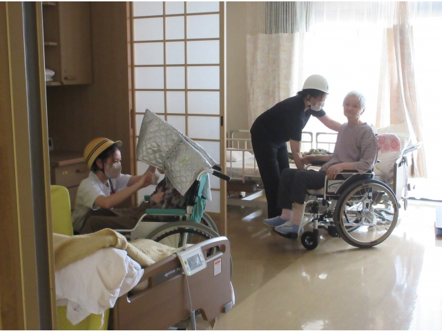 10月22日、小牧苑では防災訓練を行いました。今回の防災訓練は、夜間の火災を想定したものであり、2丁目2番地の利用者の方々が参加しました。 利用者も職員も、冷静かつ迅速に避難することができました。人手が少なくなる夜間でも、安全に確実に避難できるよう、これからも様々な場面を想定した防災訓練を行っていきます。