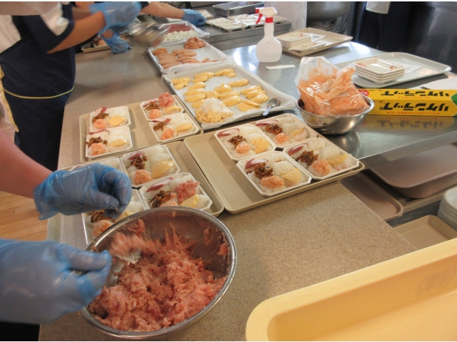 当日は寿司職人の方々をお呼びし、寿司を握る実演をしていただきました。