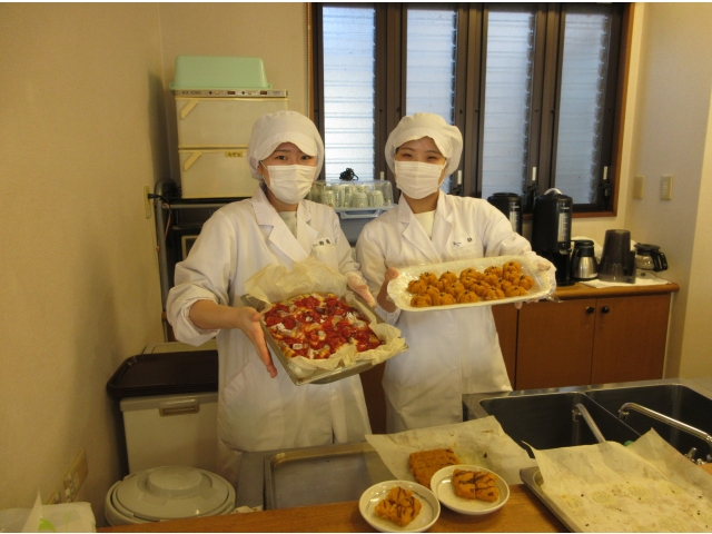 21日には高齢者を対象としたおやつとして「スイートパンプキン」と「パンプディング」を作りました。