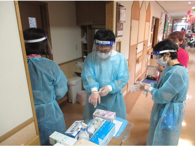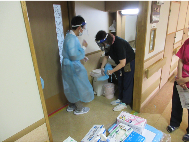 この他、前回との共通点なのですが、対応に慣れた介護職員さんたちも、予防着を脱ぐ手順を改めて行うと、細かな部分で「あれ?この順番だっけ?」と迷ってしまうようです。