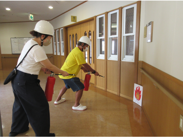 7月22日13:45~午後は火災を想定した避難訓練を行いました。