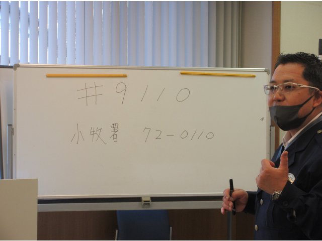 「72-0110」これは小牧警察署の電話番号です。最寄りの警察署に相談がある場合はそちらの警察署へご連絡ください。