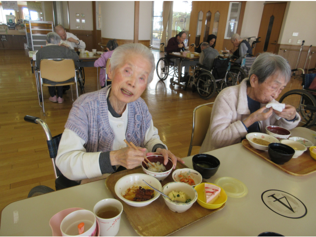 1月9日 誕生会を行いました🎂皆さんには、ノンアルコールビールとりんごジュースのお好きな飲み物を片手に、1月生まれの方々のお祝いをしました(^^♪ 乾杯のあとは、お待ちかねの誕生会食です毎月楽しみにされている方も多く、皆さん笑顔です今月も大変好評でした 🍻今月の誕生会食🍻 ご飯、うなぎのかば焼き、白菜のおかか和えお吸い物、誕生日ケーキ(あまおういちごのムース)