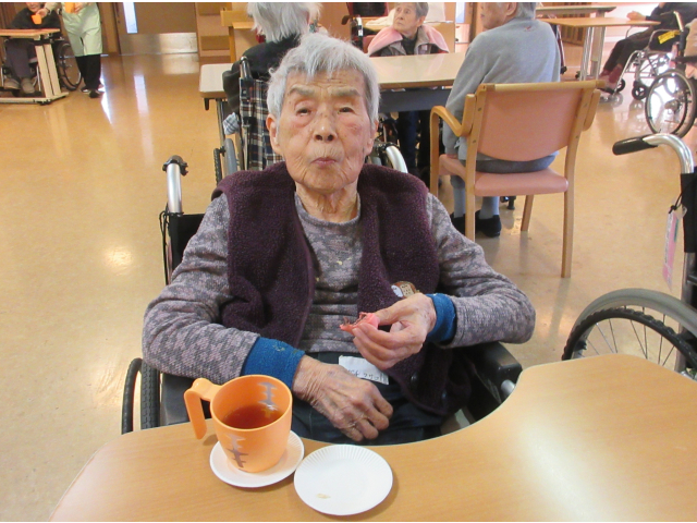 節分らしく、鬼のねりきりとなごやん、もみじまんじゅう、水ようかんの中からお好きな和菓子を選んでいただき、ほうじ茶と一緒に楽しんでいただきました(*^-^*)