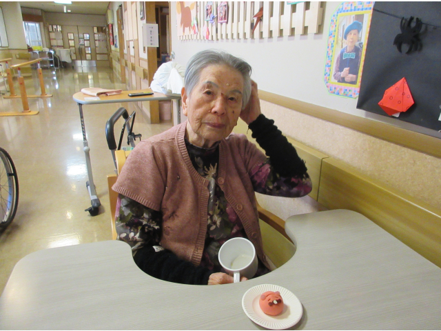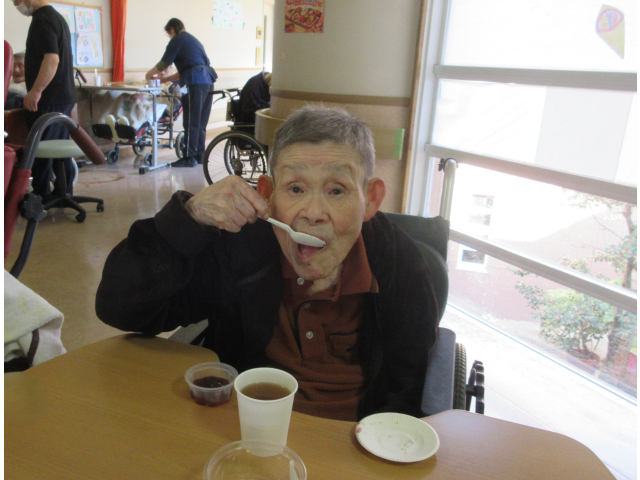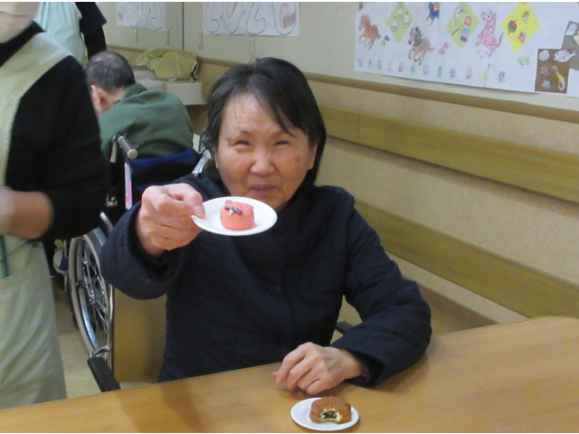 鬼のねりきりはもったいなくて食べられないと多くの利用者さんから声が聞こえてきましたが、大抵その数秒後にはパクリと口の中へ・・・(笑)