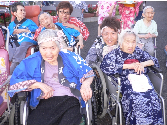 ゲームコーナーでは地域の子どもたちのはしゃいだ声が上がり、その声を聞いてほほ笑むご利用者様。盆踊りでは、多くの方々が一生懸命踊られていました。