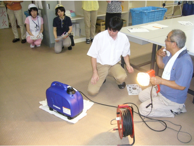平成24年8月8日(水)、午後からの避難訓練の後、ポータブル発電機を作動してみました。