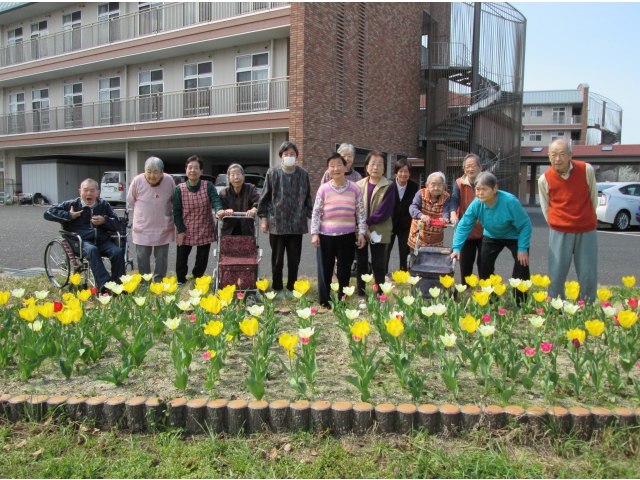 去年の10月22日に入居者さんと1球1球植え込みをした500球のチューリップが3月27日には、1本咲き始め~4月3日には満開になりました!!そして・・・皆さんの笑顔も~~~~満開になりました!!!西尾苑にお越しの際は是非見てください!きっと癒されますよ(^o^)