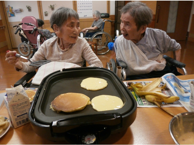 6月、なのはな・すずらんユニットでは、おやつ作りとしてホットケーキを焼きました。