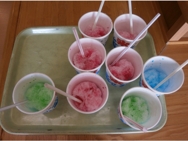 夏といえば、かき氷!この日は皆さんでかき氷をいただきました。いちごやメロン、ブルーハワイなどたくさんの種類で悩みます。それぞれ好きな味を注文して食べました。「美味しいね!」と笑顔のみなさん。その素敵な笑顔が私たちのパワーになります!7日に暦の上では立秋を迎えました。まだまだ残暑厳しいですが、一緒に乗り切りましょうね。