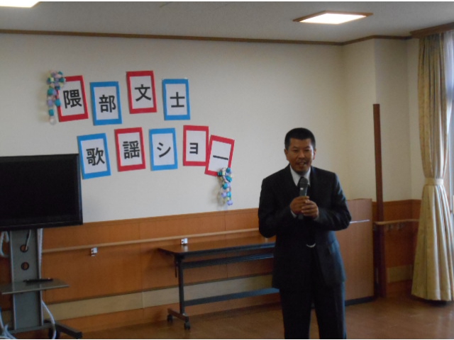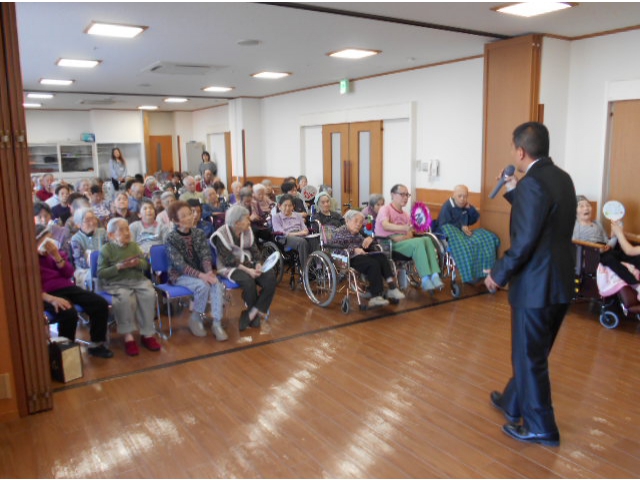 10月19日(日)気持ちのよい秋晴れの一日。 午前中、西尾出身の演歌歌手『隈部文士さん』が来苑下さり、歌謡ショーをを行いました。皆さん手作りのうちわを振って一緒に盛り上がりました。ショーの後には、サインを求める大行列が・・・・ 楽しいひと時でした。