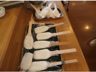 “懐かしいなぁ”と思いながら、ご飯をつぶして・・・杉の串に付けて、