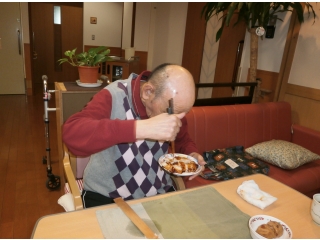 ここでびっくり!みなさん、きれいに箸で五平餅を串からはずして食べているではありませんか…。前に働いていた奥三河の施設では、串から外そうとすると、「いかん、いかん、このまま食べるでいい」と怒られていたのに…。