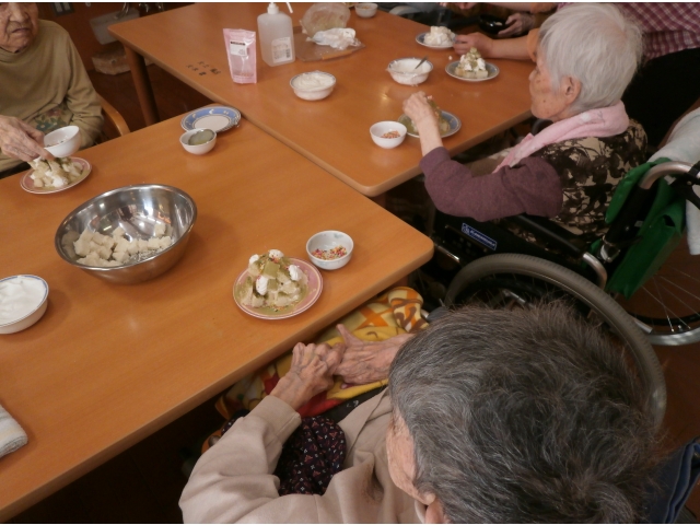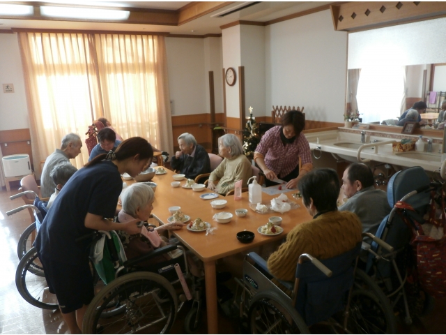 クリスマスソングをBGMに、いつもと違うリビングの様子に皆さん緊張が隠せません…。しかし作りはじめるや否やどなたも一所懸命。「こう乗せてみようか」「これを飾ってみよう」など思い思いにツリーをデコレーションしていきます。