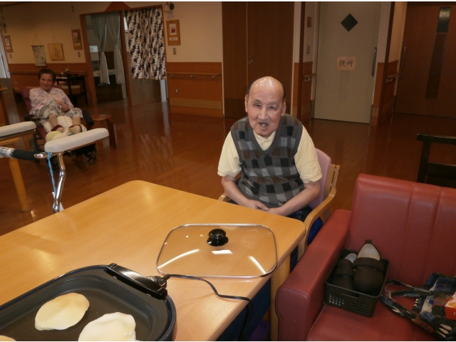 先日、おやつを作りました。あんこを挟んだホットケーキ!(大きなどら焼き?)皆さんに好評でした。