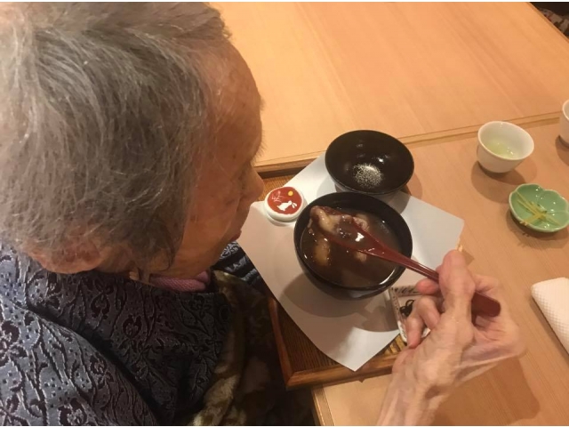 満足に買い物ができたようで、最後に甘味処に寄りました。