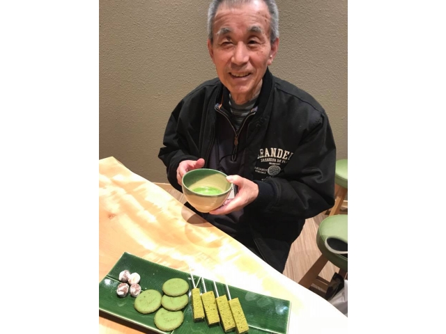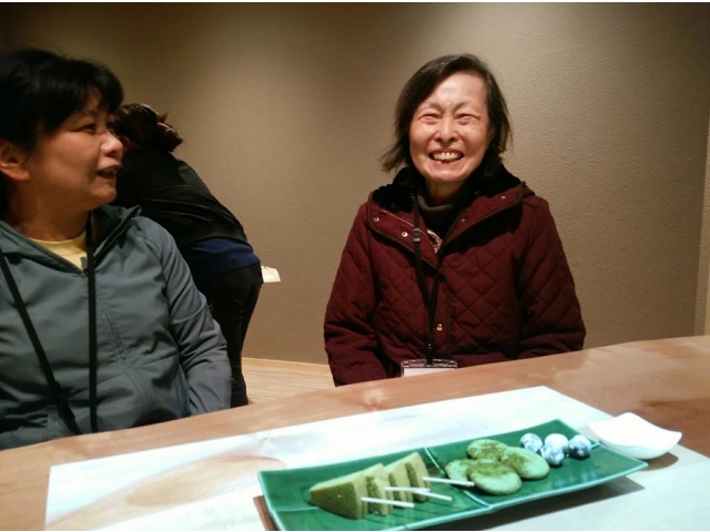 見学後、抹茶を使ったお菓子をつまみながら、お抹茶をいただきました。