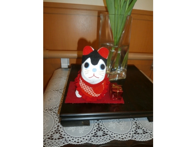 すずらんユニットには犬の置物(吊るし雛?)があります。今年81歳になる祖母が作りました。 厄除けや健康の意味があるそうです。犬の置物を見て「可愛い猫ちゃん」とよく言われています。(笑)ぜひ会いに来てください。