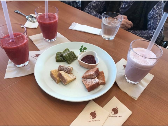 また、西尾苑近くに先日オープンしたばかりの【キングファームカフェ】さんへお茶をしにいきました。店内はとても賑わっており、20分ほど待ちましたが、天気も良くゆったりと待ちました。店内に入り、個々に気になるものを頼みました。