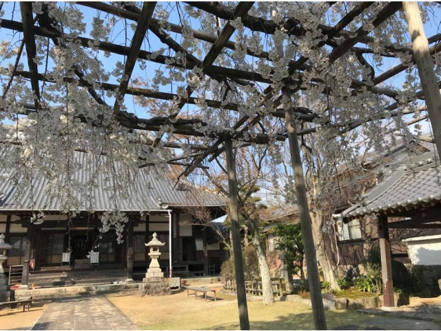 宿縁寺の敷地内に、垂れ桜が満開に咲いていました。