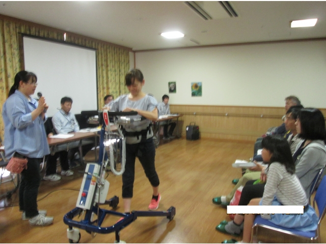 他にも機能訓練指導員から実際に使用している機能訓練器具“POPO(ポポ)”の実演も兼ねて紹介しました。