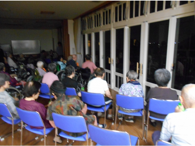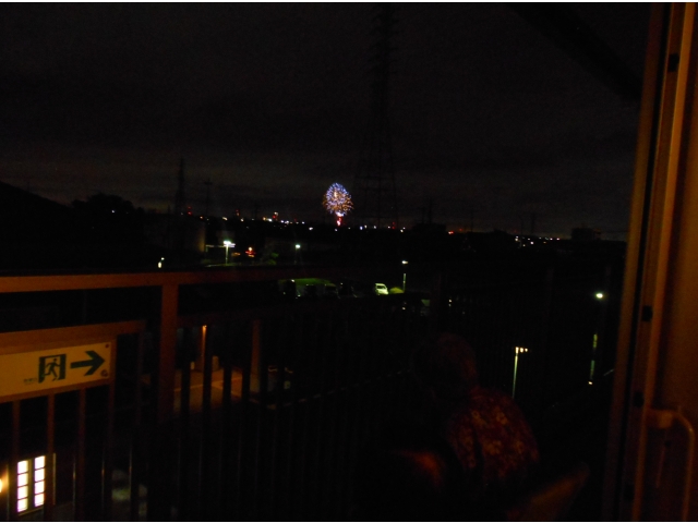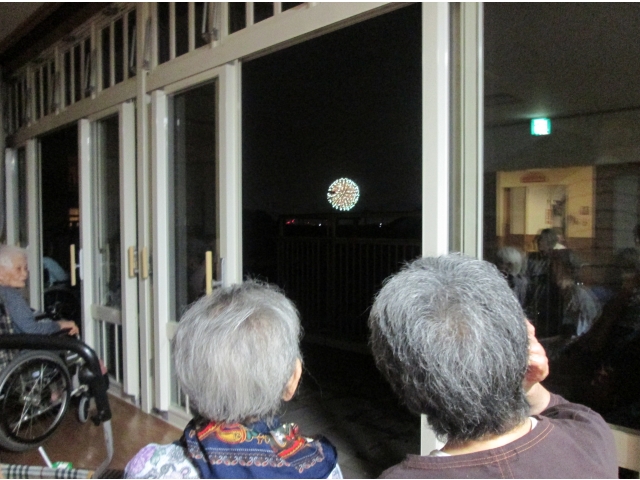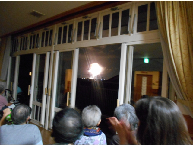 8月15日に行われたその祭典は矢作川に2000個の万灯を流し、3000発の花火が打ち上げられます。まつり会場に足を運ぶことはできませんが、愛厚ホーム西尾苑は絶好の花火鑑賞スポットです。今年も入居者の皆さんと一緒にバルコニーから打ち上げられた花火を眺めました。