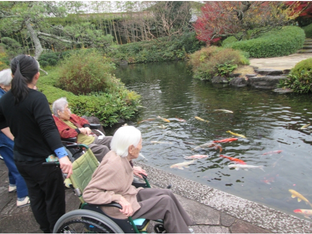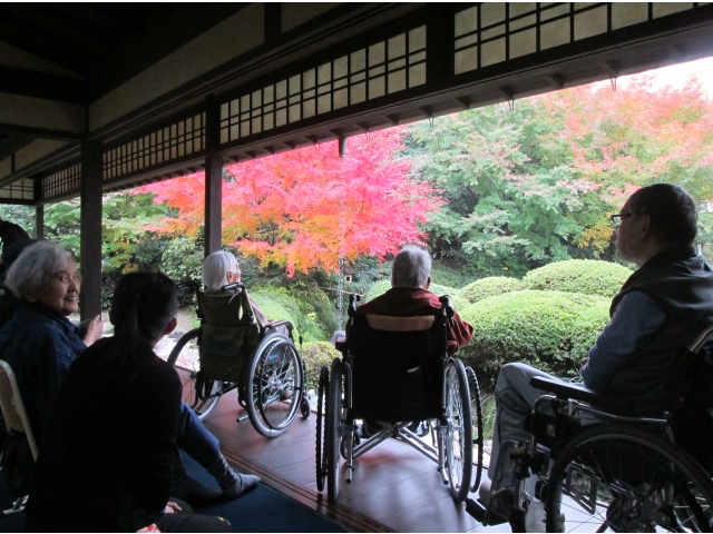 車椅子の方でもリフトがあるので、安心して見学ができます。西尾苑の入居者の方も「前にきたときよりずっときれい」「いいもの見せてもらったなあ」とのんびりお庭の眺めながらうっとりしていました。
