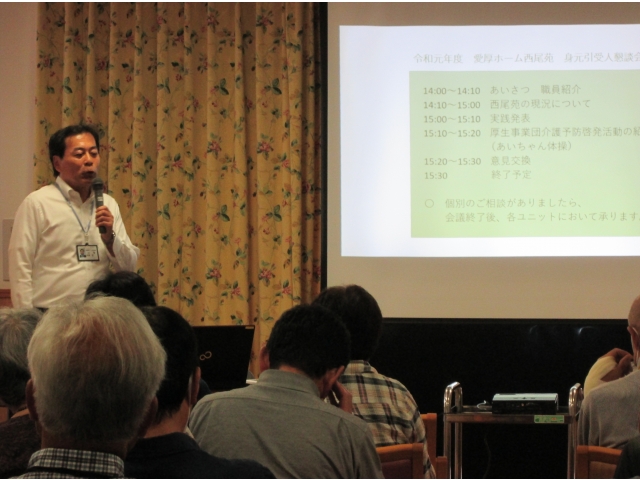 令和元年6月9日(日)小雨降る中、西尾苑では入居者様のご家族、身元引受人の皆様にお越しいただき今年も懇談会を行いました。40家族、63名のご家族様が参加され貴重な時間となりました。お越しいただいた皆様、ありがとうございます。ご参加できなかったご家族様もよろしければ当日の資料をご覧ください。(資料PDF添付)