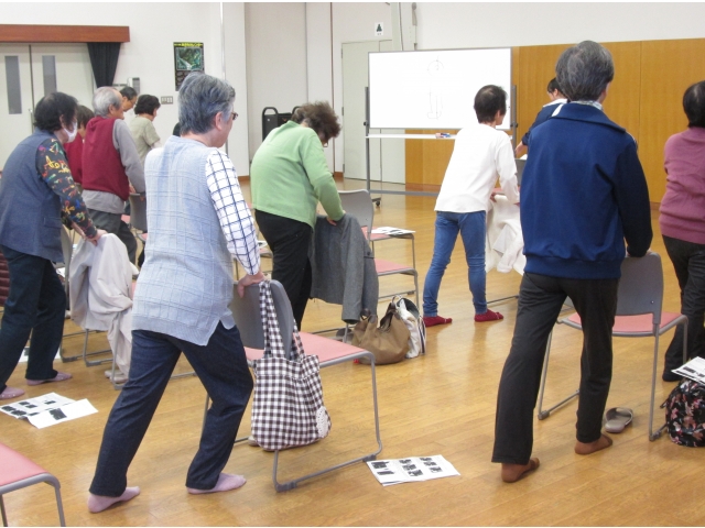 この度、八ツ面ふれあいセンターで開催された「シルバー元気教室」に、西尾苑の理学療法士が講師として参加しました。歩く・立つ・座るといった、自立生活を送るのに必要なストレッチや筋力トレーニングを、地元の高齢者に紹介しました。生活を維持できる体操はもちろんのこと、「いい姿勢で行なうこと、その姿勢とは」「秒数を口で数えると、しっかりと呼吸ができる」などといった役に立つ情報も合わせて行いました。短い時間ではありましたが、活き活きとした参加者の笑顔は印象的でした。